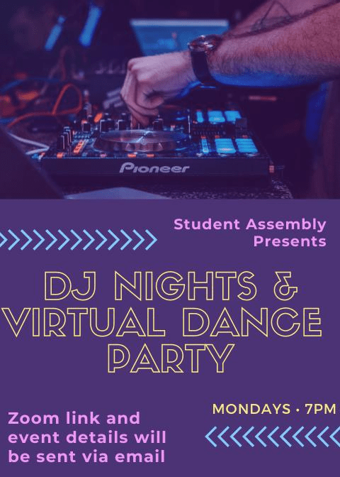 DJ Night/Virtual Dance Party Mondays, 7:00 pm