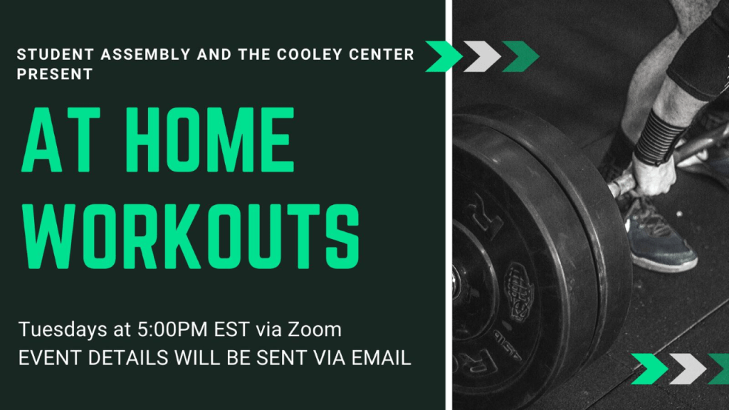 Online ‘At Home Workout’ Sessions by Trainers at the Cooley Center Tuesdays at 5:00 pm